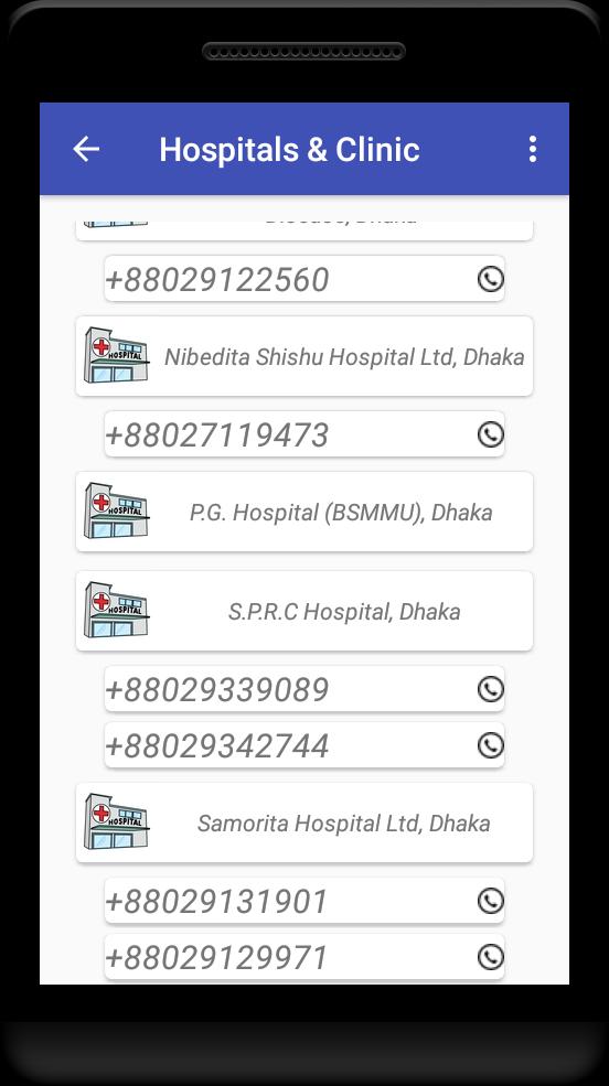 শরীর থাকলে অসুস্থতাও থাকবে। আর তাতে দরকার পড়তে পারে রোগীকে হাসপাতলে নেয়ারও। যেকোনো সময় আপনার পরিবারের সদস্য বা শুভাকাঙ্ক্ষীদের জন্য প্রয়োজন হতে পারে চিকিৎসা সেবা প্রতিষ্ঠানের ফোন নম্বর। তাই হাসপাতাল, ব্ল্যাড ব্যাংক ও এ্যাম্বুলেন্স-এর কিছু অতি প্রয়োজনীয় ফোন নম্বর দেয়া হলো যা যে কোন সময়, যে কারো প্রয়োজন হতে পারে ।