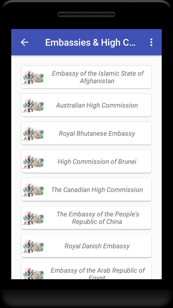 * Emergency contacts with embassy and high comissions in dhaka.