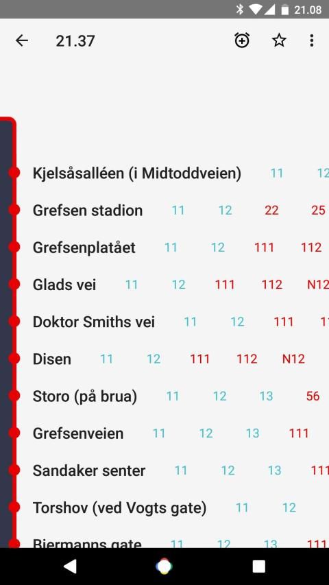 * Stjernemerk en holdeplass eller rute, så ser du avganger med en gang du åpner appen