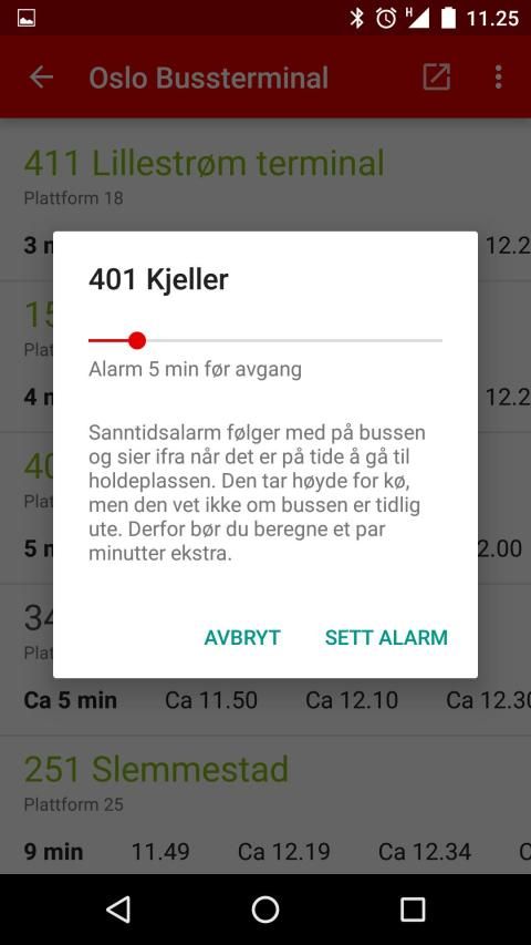 * Sanntidsalarm – mobilen ringer når du må gå, så du slipper å stå ute i kulda om bussen er forsinket