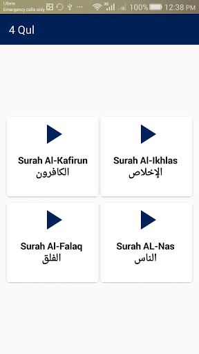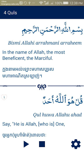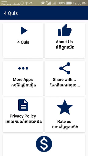 चार Qul Shareef अंग्रेजी और खमेर अनुवाद में एक एंड्रॉइड एप्लिकेशन है। और 4 qul के एमपी 3 ऑडियो के साथ। इसमें एमपी 3 ऑडियो के साथ अल-कुरान मजीद के चार पवित्र सूरह शामिल हैं, यानी सूरह अल-काफिरून, सूरह अल-इखला, सूरह अल-फलाक और सूरह ए-नास।