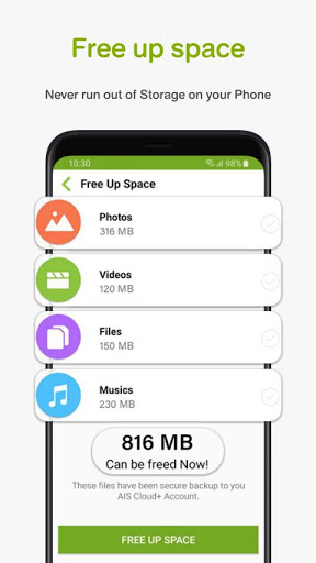 Your phone is running out of space and alerts you to free up device storage. But you don’t want to delete older photos, videos, documents and other files since all of them are important. How to manage? Don’t worry! With AIS Cloud you get a larger storage on the cloud to save your photos, contacts, videos, messages, files and memories, all at just one safe place. To protect your privacy and safety of your data, we use AES 256 double encryption. As frequently as you wish, you can automatically backup or manually upload all your files to AIS Cloud .