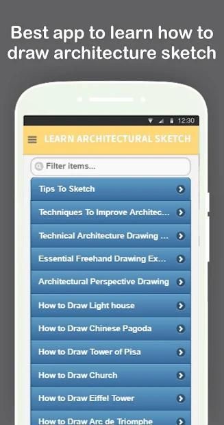 On this app contain several instructions about how to draw architecture sketch step by step easy. Tutorials made easy with illustration pictures. What are tutorial how to draw architecture sketch included on this app? They are: