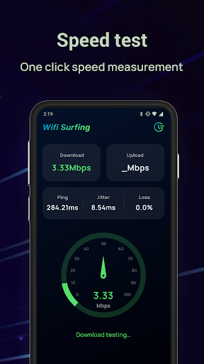 Use WiFi Surfing to test the speed of internet connections and add your results to WiFi Surfing's WiFi speed history. WiFi Surfing allows you to better understand, diagnose and use your own network. We provide you with one click speed measurement, network diagnosis, network security detection and other services.