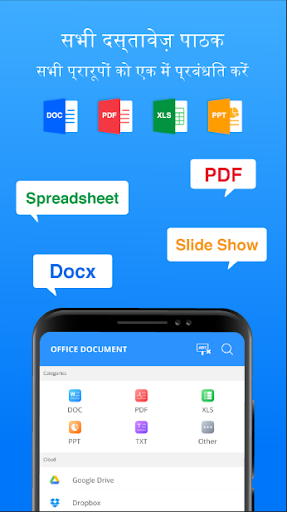 सभी दस्तावेज़ रीडर: फाइल रीडर, ऑफिस व्यूअर एक अग्रणी कार्यालय एप्लिकेशन है जो आपको इंटरनेट से डाउनलोड किए गए सभी दस्तावेजों को पढ़ने में मदद करता है, पीडीएफ फाइलों, एक्सएलएस, पीपीटी, टीएफटी, एक्सेल, एक्सएलएक्सएस फ़ाइल को पढ़ने का समर्थन करता है ... जल्दी से, आसानी से और आसानी से।