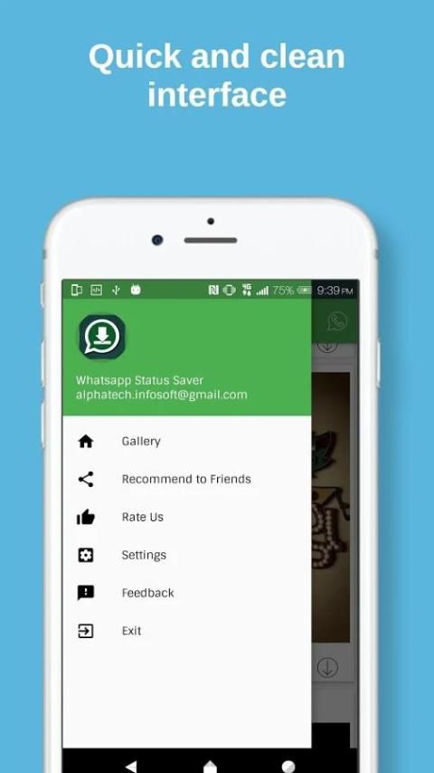 कहानी सेवर के लिए WhatsApp आवेदन हल्के और उपयोग करने के लिए सरल है। इसके अतिरिक्त यह दृश्य है और स्थिति कट पुर्जों।