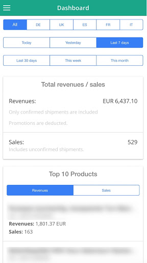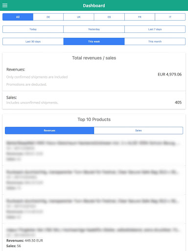 - Dashboard incl. sales statistics (only for seller)