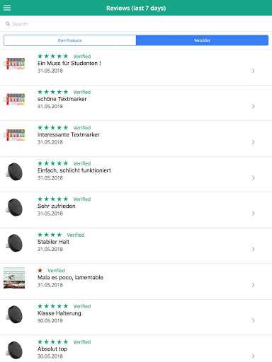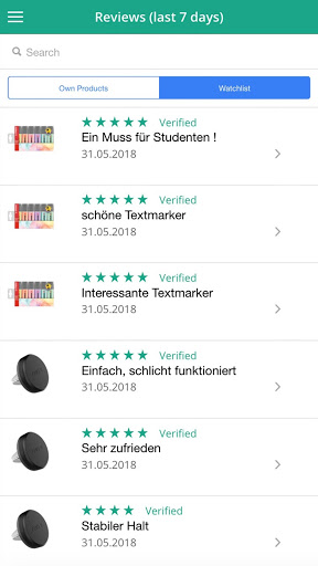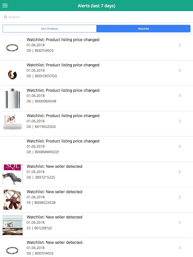 - Alerts (e.g. new review, buybox lost, new seller and many more)