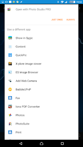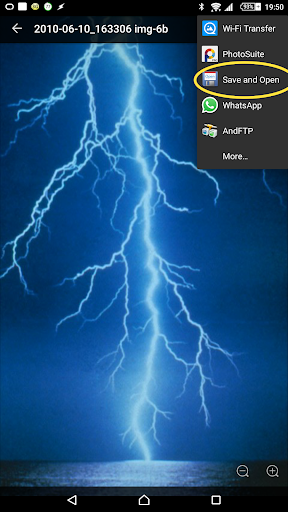 इस ऐप में शॉर्टकट आइकन नहीं है - आप इसे अपने पसंदीदा ऐप में शेयर मेनू से एक्सेस करते हैं, जहां से आप फ़ाइल को सहेजना और खोलना चाहते हैं। दो विकल्प दिखाए जाते हैं: "सहेजें और खोलें" या "सहेजें और ब्लूटूथ"।
