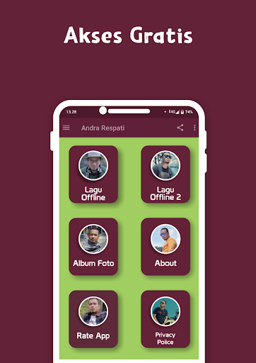 इस मेनू में, जिसमें गीत एंड्रा रेस्पति पूर्ण एल्बम ऑफ़लाइन 2020 शामिल है, ऑफ़लाइन प्रदान किया गया है। चार गाने एंड्रा रेस्पति पूर्ण एल्बम ऑफ़लाइन 2020 हैं जिन्हें ऑफ़लाइन खेला जा सकता है और इसे साझा किया जा सकता है।
