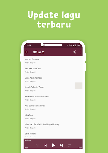 इस मेनू में, जिसमें गीत आंद्रा रेस्पति को ऑफ़लाइन प्रदान किया जाता है। 10 एंड्रा रेस्पति गीत हैं जिन्हें ऑफ़लाइन खेला जा सकता है।