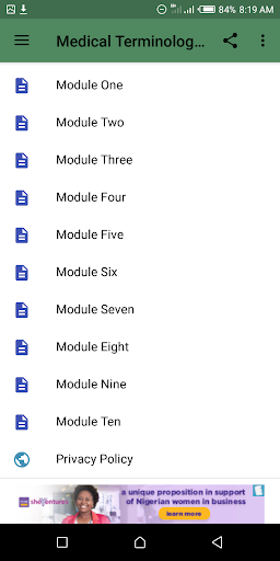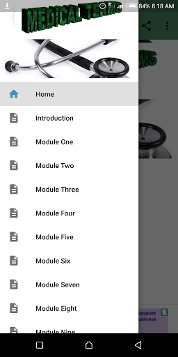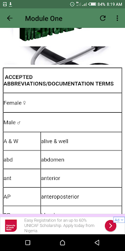 This application contains some basic Medical Terminologies and abbreviations which will help students understand a lot in the field of medicine and other related health fields.