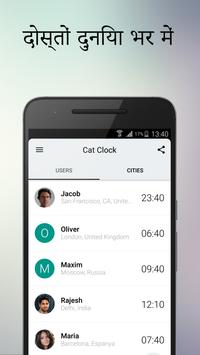 कैट क्लॉक एक सरल अभी तक मजबूत समयक्षेत्र कनवर्टर और विश्व घड़ी है, जो आपको विभिन्न समय क्षेत्रों में बैठकों का समय निर्धारित करने में मदद करता है। अंतर्राष्ट्रीय समय के साथ विजेट जल्द ही जोड़ दिया जाएगा।