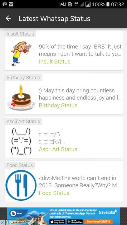 Whatsapp स्थिति श्रेणियों में शामिल हैं:
