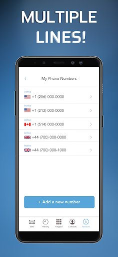 ► Get your own US, Canada, or UK phone number with the option to add a second line of your choice.