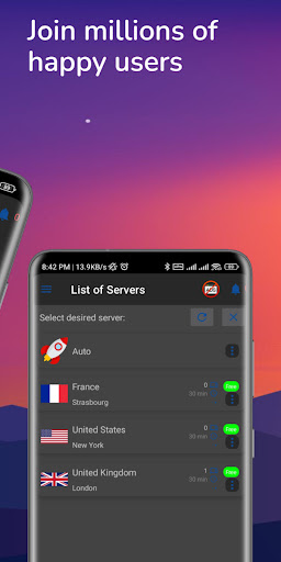 AX VPN आपके इंटरनेट कनेक्शन को एन्क्रिप्ट करता है ताकि तृतीय पक्ष आपकी ऑनलाइन गतिविधि को ट्रैक न कर सकें, जिससे यह एक से अधिक सुरक्षित हो जाता हैविशिष्ट प्रॉक्सी, अपने इंटरनेट की सुरक्षा और सुरक्षा बनाएं, खासकर जब आप सार्वजनिक वाई-फाई का उपयोग करते हैं।अधिकांश सर्वर का उपयोग करने के लिए हैं, आप ध्वज पर क्लिक कर सकते हैं और सर्वर को किसी भी बार बदल सकते हैं।VPN (Android 5.0 की आवश्यकता) का उपयोग करने वाले ऐप्स