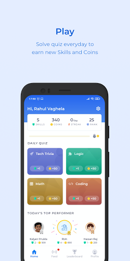 Daily quizzes across 4 topics - Math, Coding, Logic and Tech Trivia