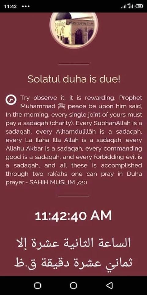 It has a feature that translates your local time into arabic text, it is replete with a functionality that chants audio athkar every thirty minutes to keep your soul connected to Allah (S.A.W ), you are therefore meant to repeat the athkars after the audio. This helps your soul not to be extremely attached to the distractions or over seriousness of using the internet and the social media. Other features include the sunnatic fasting reminder, the app is intelligent to identify some special days like Jumah, and it will remind and guide you on what you should do.