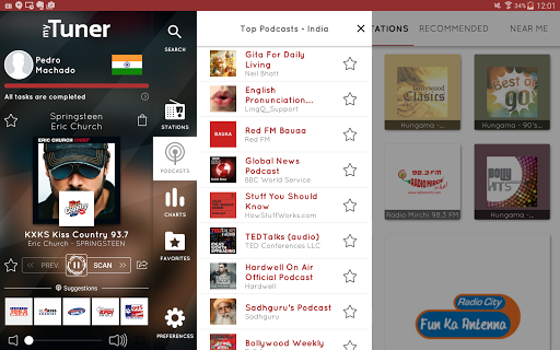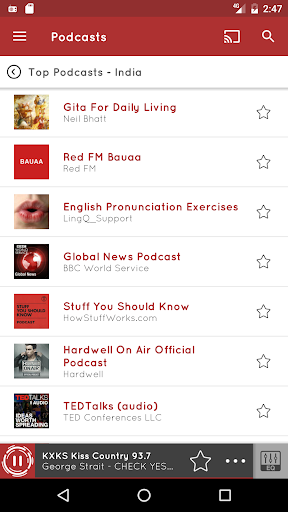 - AM, एफएम और 200 से अधिक देशों से ऑनलाइन रेडियो स्टेशनों;