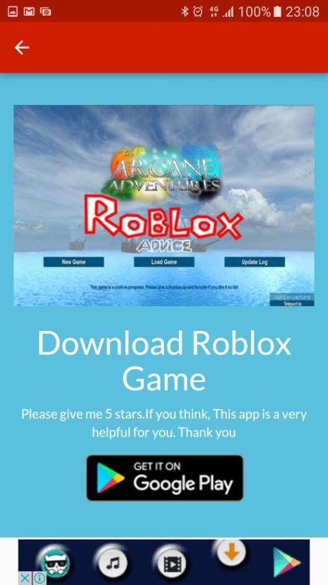 Hot applications make large number of downloads. 10,000+ users downloaded ARCANE ADVENTURE ROBLOX ADVICE latest version on 9Apps for free every week! It truly does not offer any money. This hot app was released on 2016-11-01. You can see more apps release recently on 9Apps.