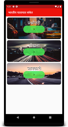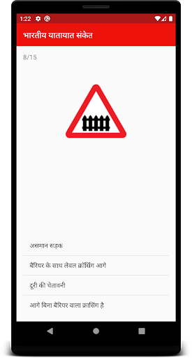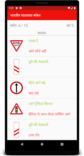 यह ऐप सभी भारतीय सड़क संकेतों को सीखने का एक शानदार तरीका है। अपने ड्राइवरों का लाइसेंस प्राप्त करने से पहले यह अभ्यास करने का एक अच्छा तरीका है, लेकिन यह पर्यटकों और अन्य लोगों के लिए भी अच्छा है जो सड़क के संकेतों के बारे में अधिक सीखना चाहते हैं।