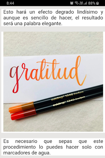 La app "Cómo Hacer Lettering - Tutorial Gratis Paso a Paso" contiene un curso completo que te enseñará las técnicas que debes aprender y aplicar para crear textos con caligrafía lettering, es decir, artísticamente suave y elegante, estilo que por cierto está siendo tendencia en la actualidad. El estilo lettering es fácil de aprender, pero como cualquier arte, necesita práctica, y en este caso la práctica es muy divertida: es muy agradable y relajante llenar páginas y páginas con fuentes de caligrafía, letras de caligrafía, escritura de caligrafía y palabras diferentes con good vibes.