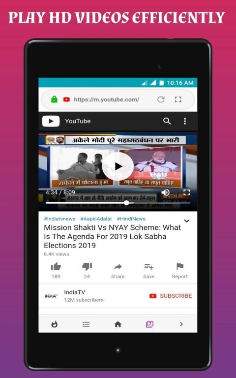 इसके अलावा, हम jpg, png, mp3 आदि सभी तरह की फाइल को ब्राउजर के साथ डाउनलोड कर सकते हैं। यह एक तेज़, सुरक्षित ब्राउज़र है जो आपको टन डेटा बचाता है और आपको सोशल मीडिया से वीडियो डाउनलोड करने देता है।
