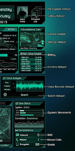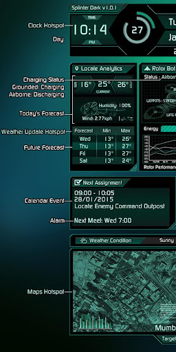 यह त्वचा एक पूर्ण पैकेज है जिसमें घड़ी, तिथि, एजेंडा, बैटरी, शॉर्टकट, अधिसूचनाएं, मौसम, तापमान इत्यादि शामिल हैं