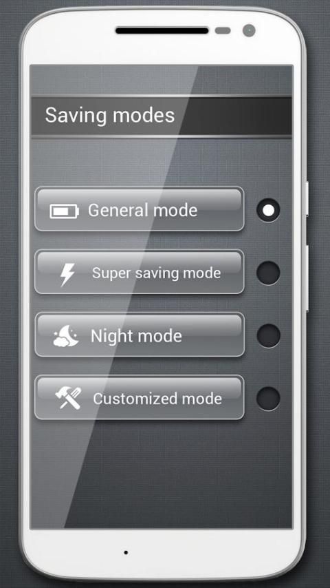 सुविधाएँ - बैटरी स्तर संकेतक - बैटरी बचत मोड: चुनें अलग पूर्व निर्धारित बैटरी मोड बचत करने के लिए बनाता है के बीच अपनी बैटरी पिछले अब। प्रत्येक मोड अपने मोबाइल सेटिंग्स समायोजित करें, ताकि बैटरी बचाने के लिए अनावश्यक एप्स को अक्षम करें।