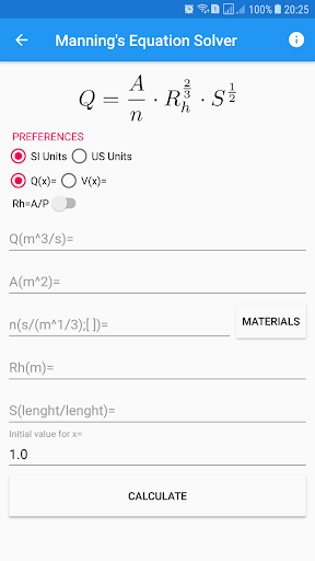 - Manning's Equation Solver - Units Converter - Most Efficient Sections and more!