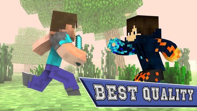 There are over tons of skins to choose from, with more being added every day! You can try your Skins on all types of maps : Survival Maps , Adventure Maps , Creative Maps , Parkour Maps , Red Stone Maps and all other that you want! They even work with the best mods for minecraft pe - like: Lucky block mod , Fly Mod , Pixelmon mod , herobrine mod and all other mods that you like.