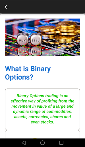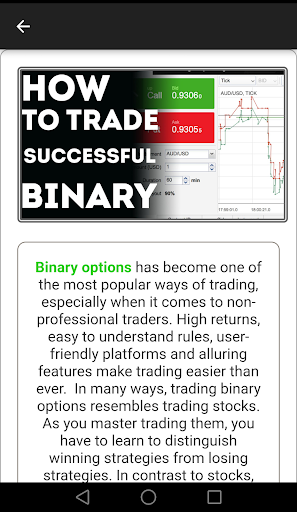 A good binary options trading strategy can do miracles. But, good options strategies are hard to find. Binary options trading signals can be misleading and the options strategy in general is a pretty complicated area. The binary options app we created will educate you about the best binary options strategies. It can make you an ultra-successful trader! Just follow it closely and let it lead you to financial success.