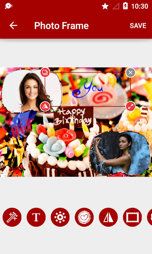 ► दो उंगली इशारों को अपनी तस्वीर ज़ूम करें और जन्मदिन की दोहरी फोटो फ्रेम में समायोजित करें।