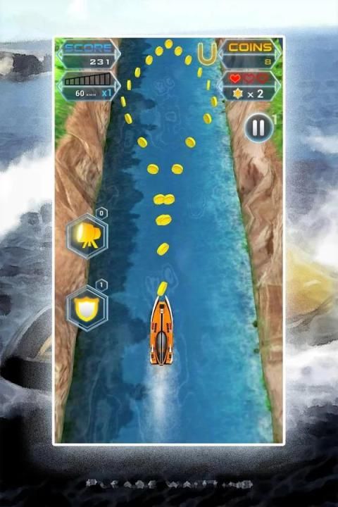 Tilting the phone screen, control the direction of the boat. Tap the screen to speed up. Collect coins to unlock more boat.