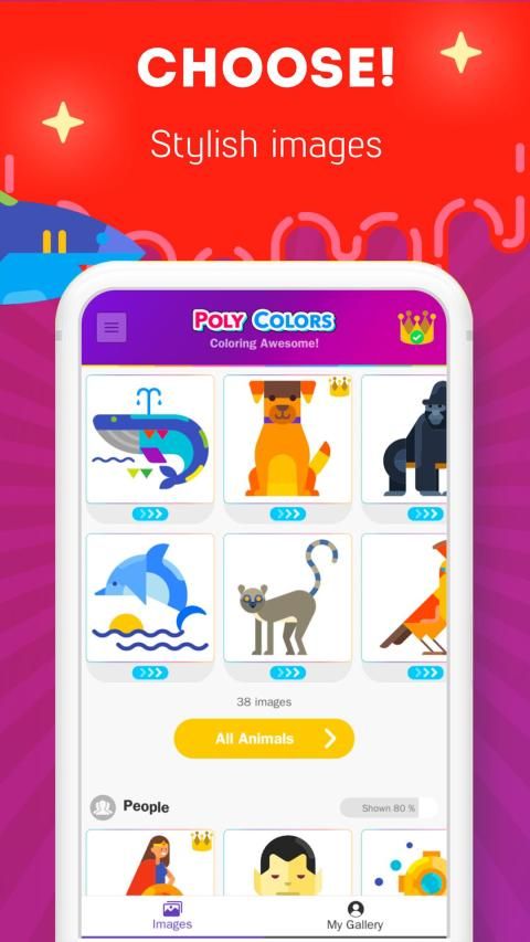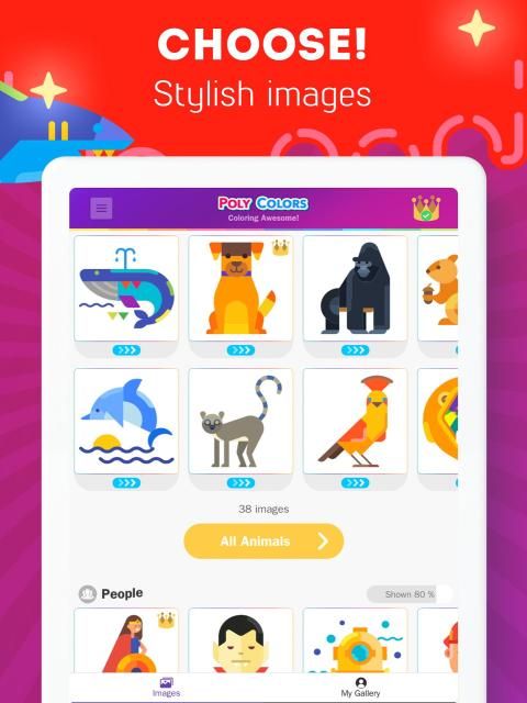 ⭐ Your kids can choose images for coloring and poly artbook painting from a lot of categories: