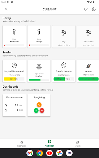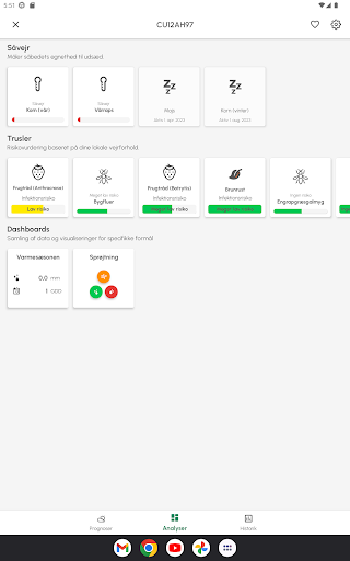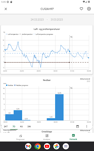 - Dugpunktsprognose i historiske grafer.