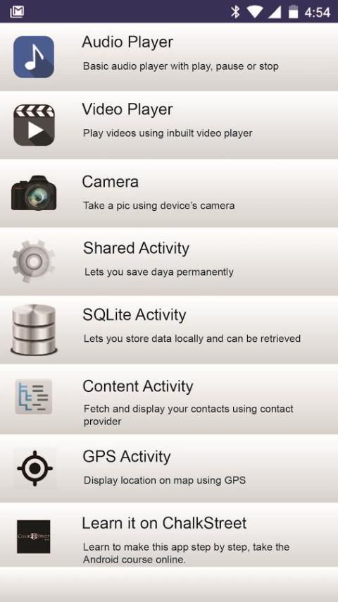 Download this App and immediately begin developing different varieties of Android Applications. This App is also perfect as a reference guide whenever you want to build an Android Application in quick time.