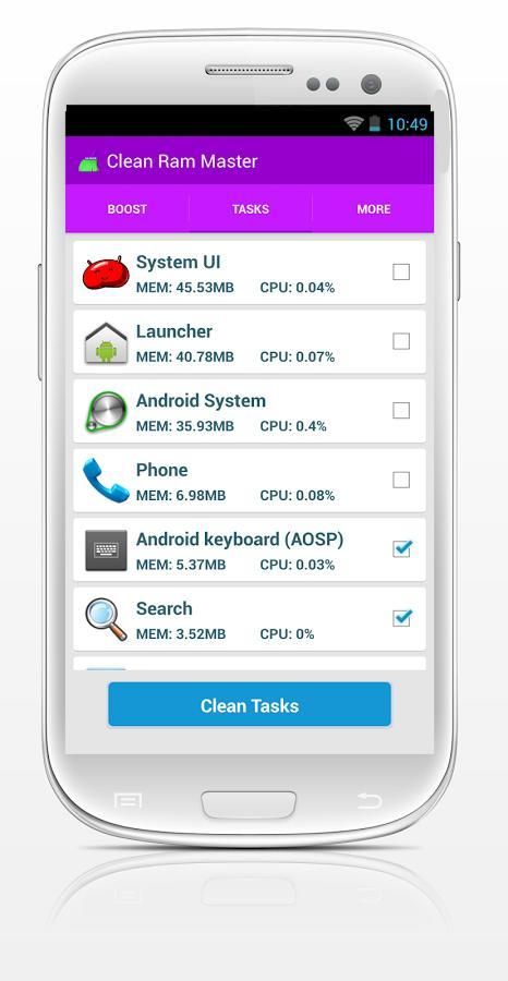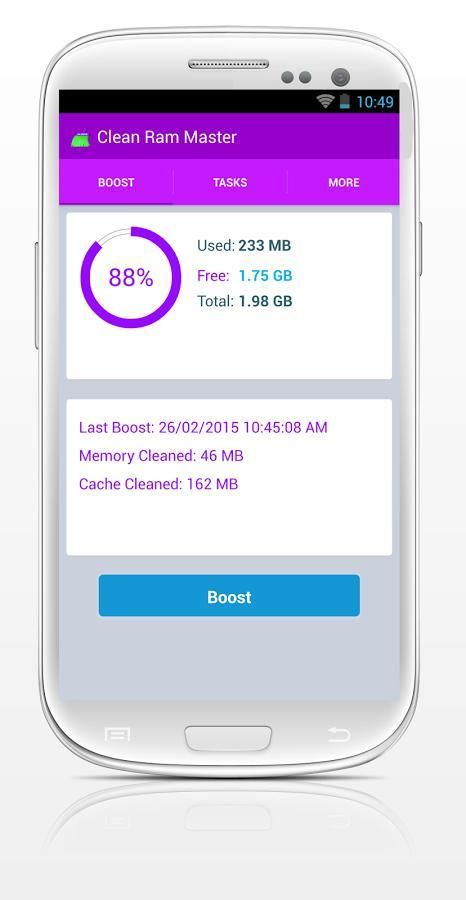 <> स्वच्छ राम मास्टर यह आपके डिवाइस 100 गुना तेजी लाने के लिए मदद करता है सबसे अच्छा स्मृति को बढ़ावा देने के लिए है।