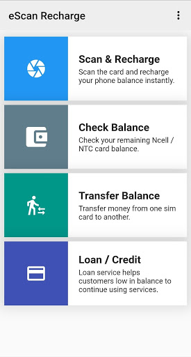 Quickly scan the PIN from Recharge cards, check balance, transfer money from one mobile to another, get credit loans and many more.