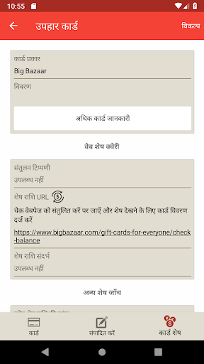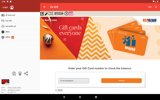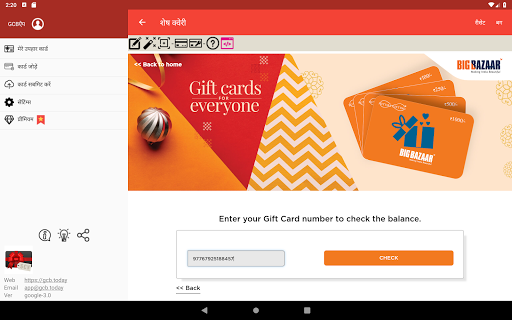 + गिफ्ट कार्ड और उसका बैलेंस चेक लिंक जोड़ें