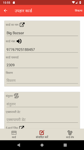 + भविष्य के संदर्भ के लिए कार्ड का विवरण और संतुलन प्रबंधित करें