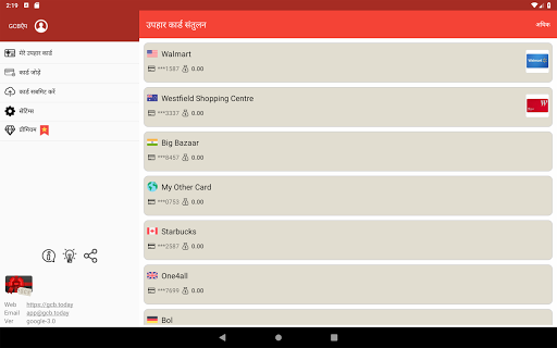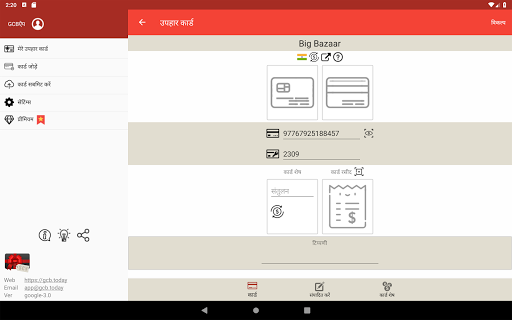 b) गिफ्टकार्ड वॉलेट और कार्ड प्रबंधन: