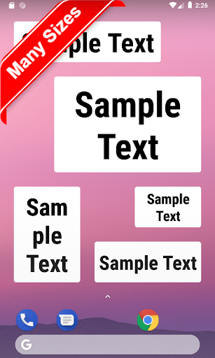Basic widget for displaying static text on home screen * Custom Text and Background Colours * Text auto-adjusts size to fit * 6 different widget sizes available * multi-widget support
