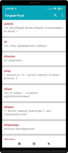 एंड्रॉइड ऑपरेटिंग सिस्टम-रूसी-ताजिक डिक्शनरी पर स्मार्टफोन और टैबलेट के लिए एक अनूठा एप्लिकेशन प्रस्तुत करना।हमेशा नहीं, यदि आवश्यक हो, तो ताजिक भाषा के एक देशी वक्ता के साथ समझाने के लिए, हाथ में एक पेपर शब्दकोश है, और इसे अपने साथ ले जाने के लिए असुविधाजनक है।ताजिकिस्तान जाने पर, आपको बस अपने लिए इस एप्लिकेशन को डाउनलोड करने की आवश्यकता है, और आप व्यावहारिक रूप से स्थानीय भाषा की अज्ञानता से असुविधा महसूस नहीं करते हैं।