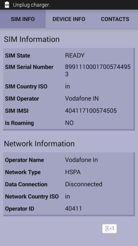 # सिम विवरण: ऑपरेटर नाम, सिम स्थिति, सिम IMSI, रोमिंग सूचना, मोबाइल डेटा स्थिति, देश आईएसओ।