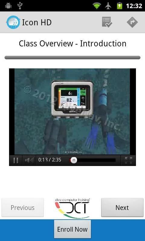 Each DiveComputerTraining class is organized based on progressive learning and as such the user is recommended to follow the modules and sections in sequence. At the same time, the interactive organization of the class allows student to directly access a specific section for easier reference.