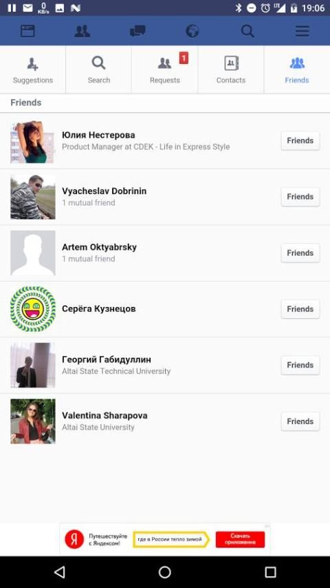 फेसबुक अमेरिकन प्लान मिनी के लिए Neoffitsialnoe अनुप्रयोग।