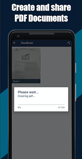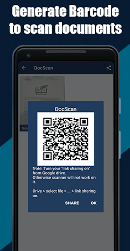 It allows users to 'scan' documents (by taking a photo with the device's camera) and then share the photo as a PDF. The app can also generate ‘barcode’ for future reference.