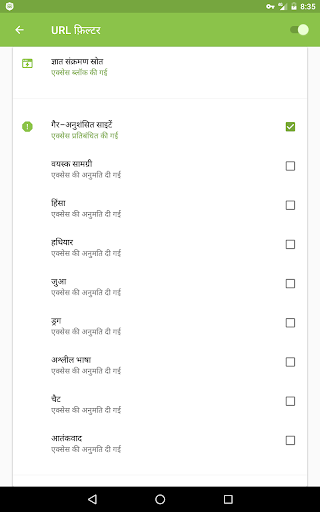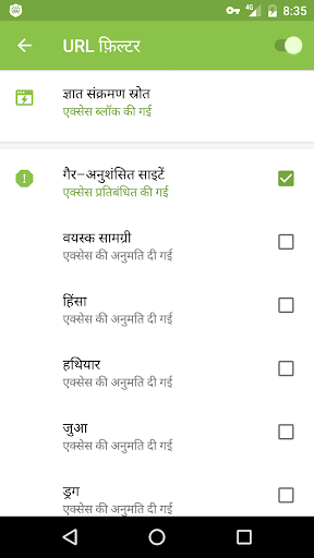 • विषय की श्रेणियों (ड्रग्स, हिंसा, आदि) के अनुसार ब्लॉक करना।