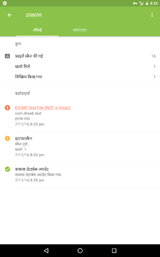 • पहचाने गए ख़तरों को क्वारंटाइन में ले जाना; फ़ाइलों की पुनर्स्थापना।